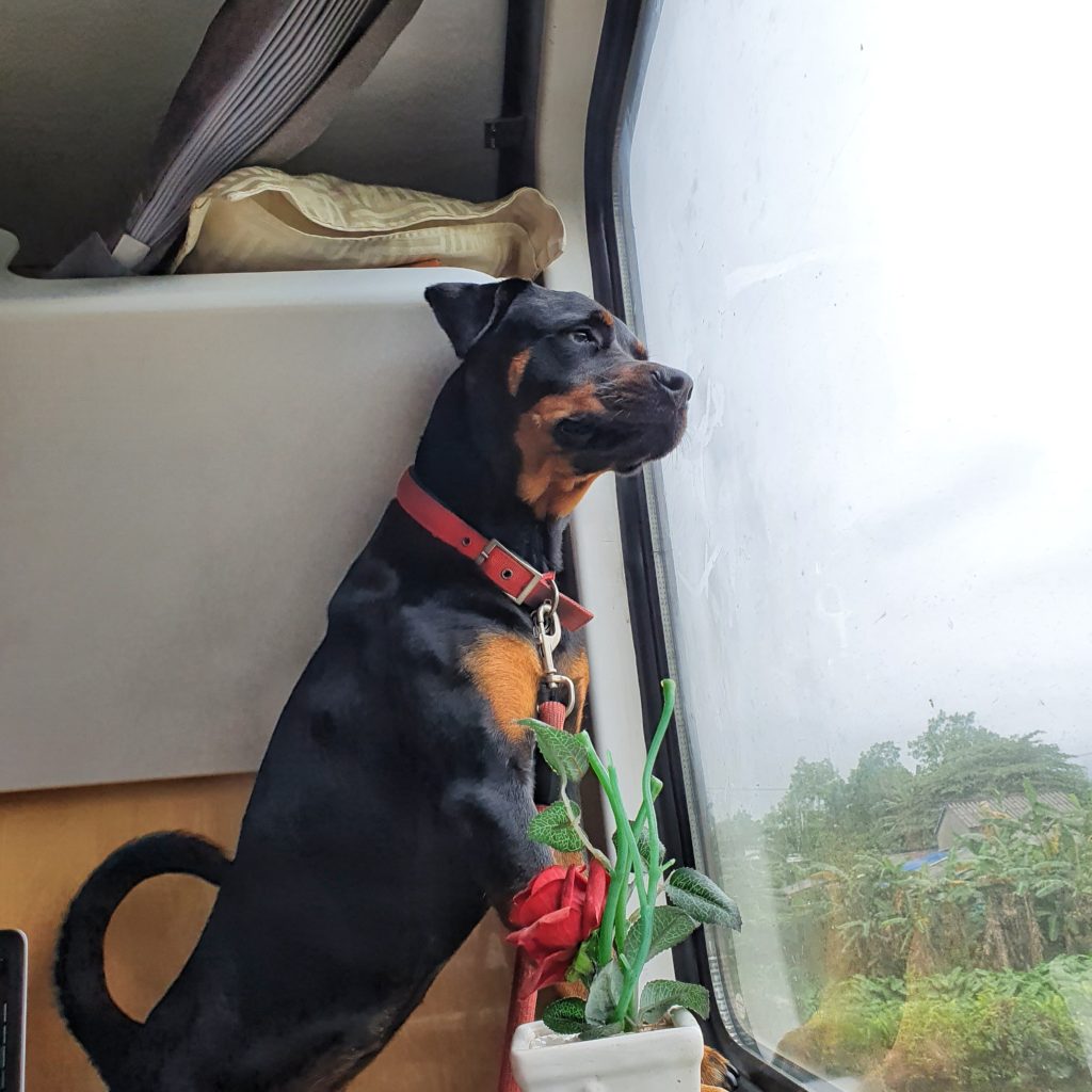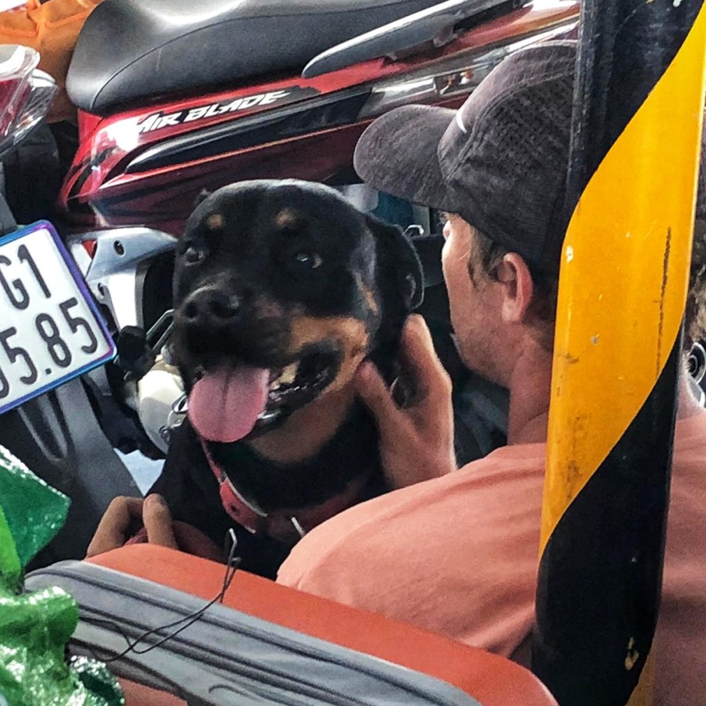 The entire journey from Phu Quoc to Ha Long Bay is over 2200km long and took 68.5 hours. Kiara is a 5 year old Rottweiler girl that weighs 30 kilo’s and is mostly muscle and happy excitement (although she can protective with strangers).